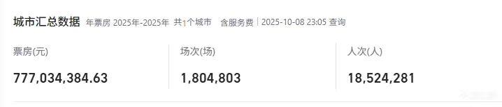 截至10月8日23點05分,蘇州2025年度總票房。 來源:燈塔專業版