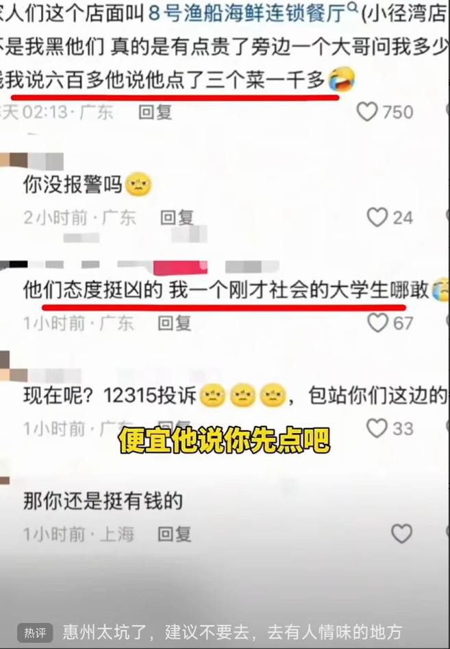 “問價格的時候不說,讓我們先喫,就這樣強行留住了我們。”楊先生面對鏡頭講述自己在惠州海鮮餐廳的遭遇時,語氣中充滿了無奈。當他將這段經歷發到網上,沒想到卻引出了一連串令人意想不到的反轉。