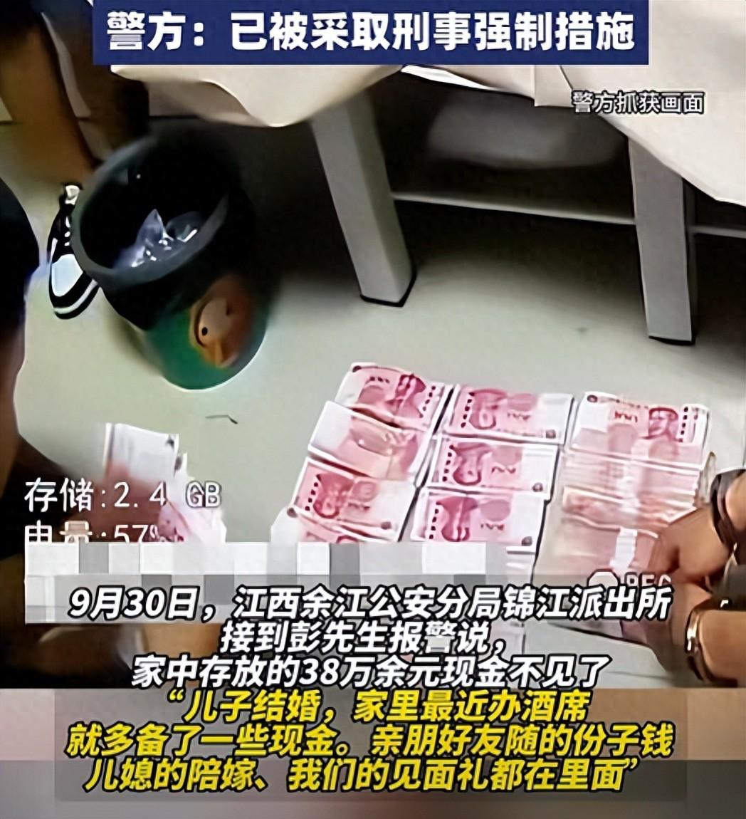 江西餘江區錦江鎮,彭先生的兒子剛舉行完婚禮,家中放着準備用於新婚夫婦未來生活的禮金,總共38萬元,被整齊地放在一個拉桿箱內。