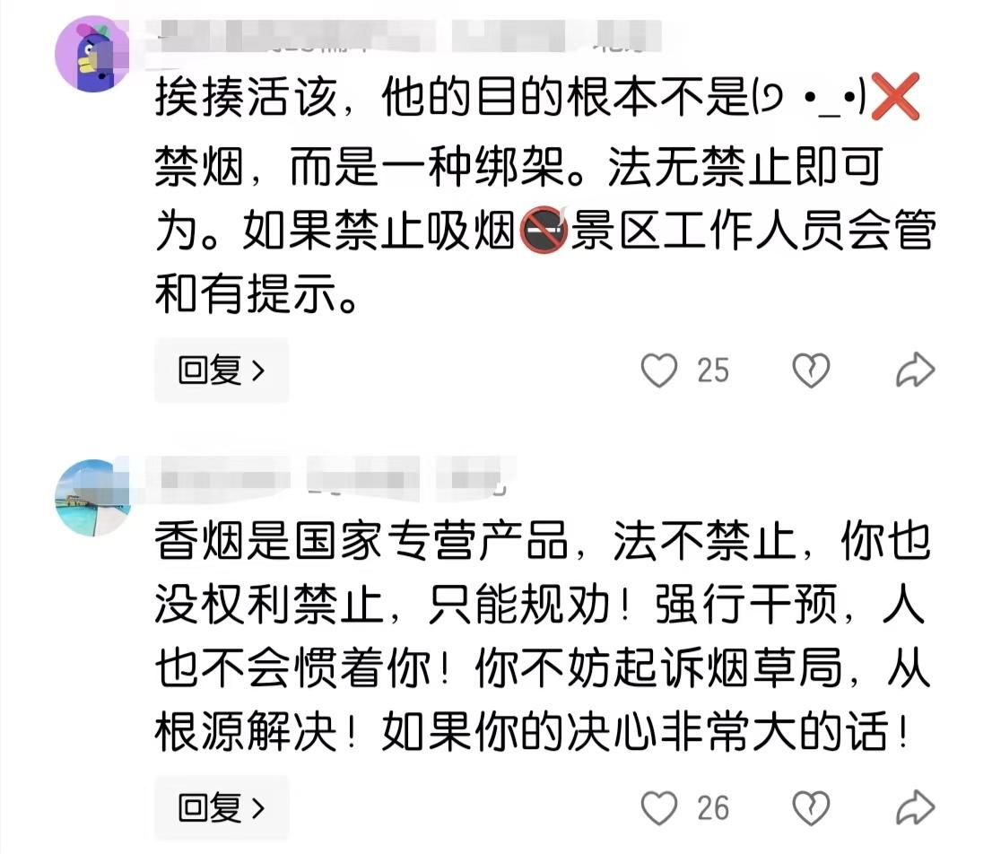 玉龍雪山衝突事件經媒體報道後,在網絡上引發了熱烈討論。出乎意料的是,不少網友對勸阻吸菸的反響並不完全是一邊倒的支持。