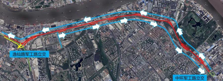 項目於2017年12月啓動建設,與“同濟路高架—逸仙路高架—軍工路高架—中環東段”共同構成中心城東部地區新的南北向快速通道,向北通過逸仙路—同濟路高架直達高鐵上海寶山站,向南通過華夏高架直達浦東機場。