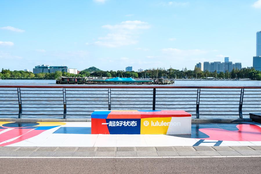 圖爲lululemon攜手藝術家Geoff McFetridge在徐匯濱江特別呈現“好狀態趣動場”。