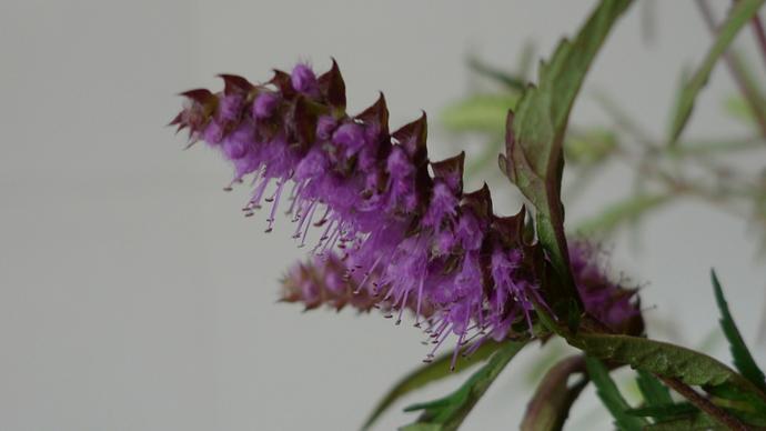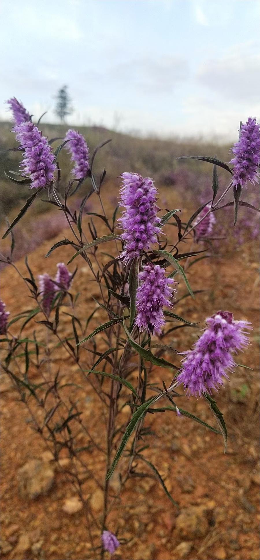 銅草花,也叫牙刷草,其學名是海州香薷。銅草花是脣形科香薷屬草本植物,葉片對生呈長圓形至披針形,聚傘花序頂生或腋生,花瓣淡紫色至紫紅色。該植物具有耐貧瘠、抗重金屬污染特性,其根系分泌物可活化土壤養分促進生態修復,因而成爲銅礦區環境治理的關鍵物種。