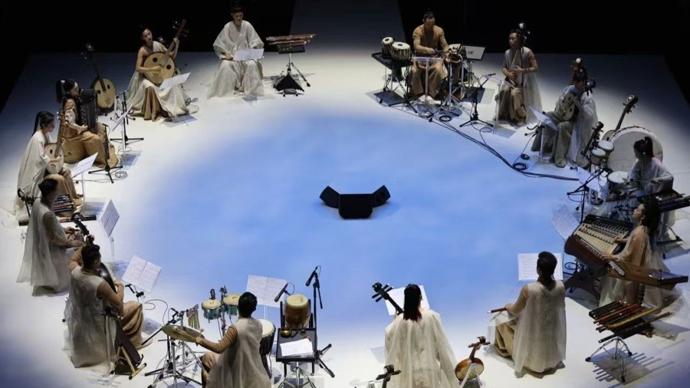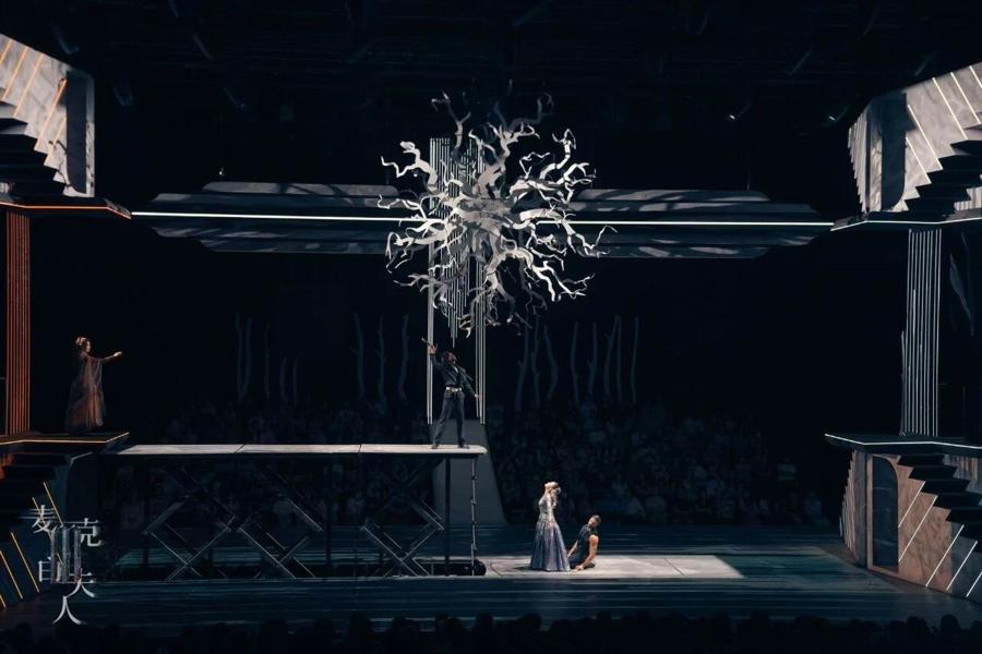 “它的空間調性與1862的特質完全契合。”李豔口中的這部作品正是1862的駐場經典——中英合作原創音樂劇《麥克白夫人》。《麥克白夫人》的舞臺設計突破傳統,觀衆可以在舞臺兩側觀看,“鏡像式”的調度與“移軸式”閃回以多視角深潛人物的內心迷宮。原創沉浸式海派民樂《雲之上——讓聽覺從東方出發》則以圓形聲場與T形走臺設計,讓20位青年音樂家執掌的百餘件民族樂器“環繞”觀衆,純淨人聲與傳統器樂交織,觀衆在不同位置都能沉浸於東方美學的聲景迷宮。