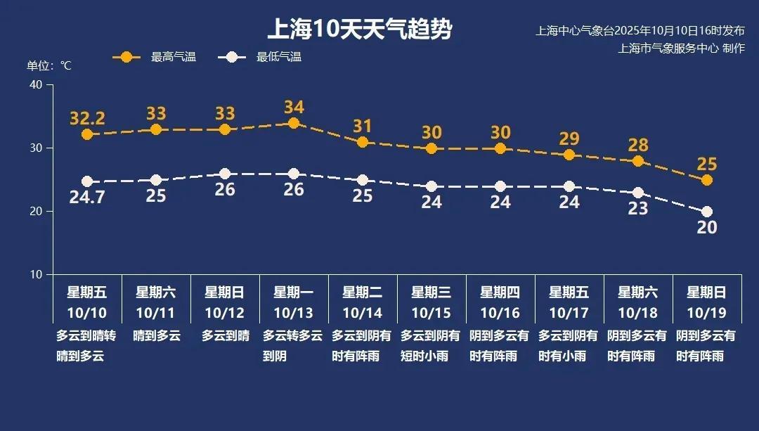 上海未來3天或連刷紀錄,最高溫直衝34℃再轉折,冷空氣已發貨,下週末僅25℃