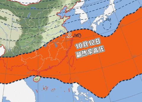 在副熱帶高壓控制下,上海本週六到下週一最高氣溫可達33~34℃,或連續刷新10月中旬同期氣溫最高紀錄!