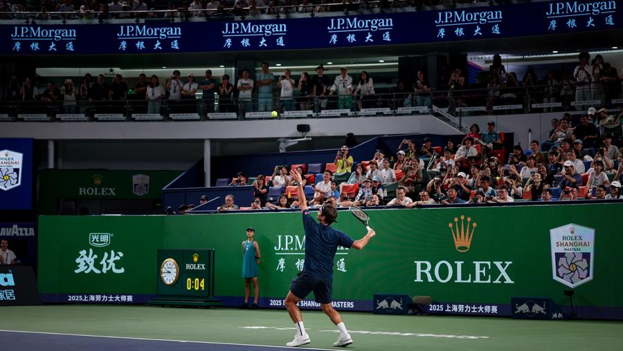 10月10日晚,2025上海勞力士大師賽當日比賽結束後,在旗忠網球中心中心球場內,“費德勒超級摯友之夜”壓軸舉行。