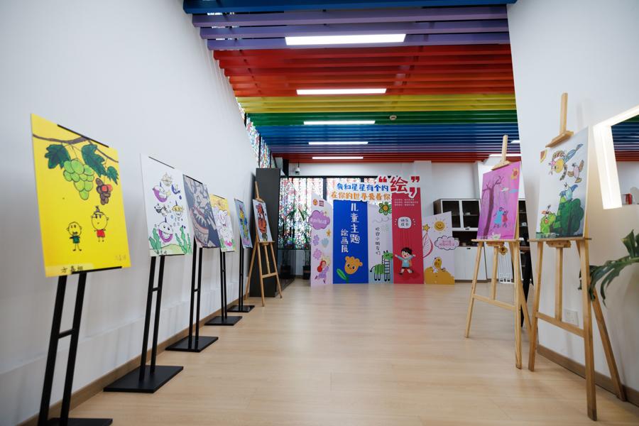 然而,異鄉的稻穀、荷花,能直接給予年輕人歸屬感嗎?鄉愁,需要容器來盛放;羈絆,需要紐帶來聯結。蓮湖村的南北美術館便是在這樣的契機下開張。美術館選址稻田邊,曾經是個大倉房,也是村民喫席的“客堂間”,如今一樓展陳具有青浦特色的美術作品,二樓則闢有茶室、畫室和公共閱讀空間。