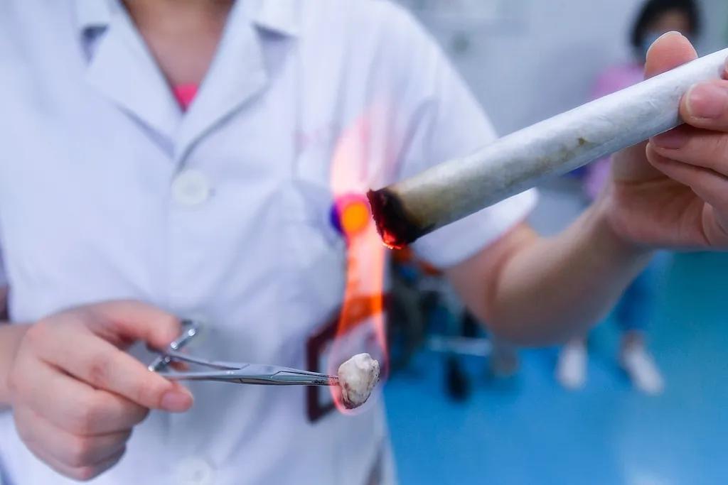 看着艾條燃起的紅點,吳老師開玩笑道:“我這雙手寫字的,現在命就交給你了。”