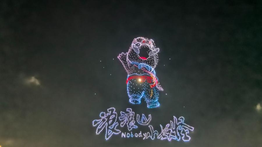 上海徐匯濱江西岸夢中心,無人機展演以夜空爲舞臺。