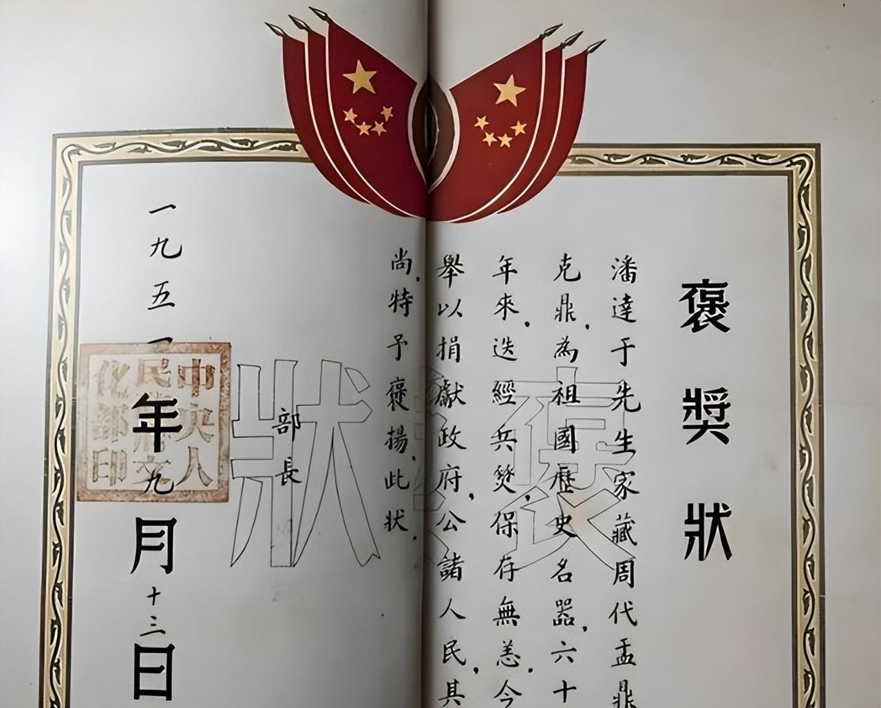 1951年,她主動寫信給華東軍政委員會文化部,表示"盂克二鼎爲全國重要文物,理應公諸人民",願意將兩大鼎捐獻給國家。