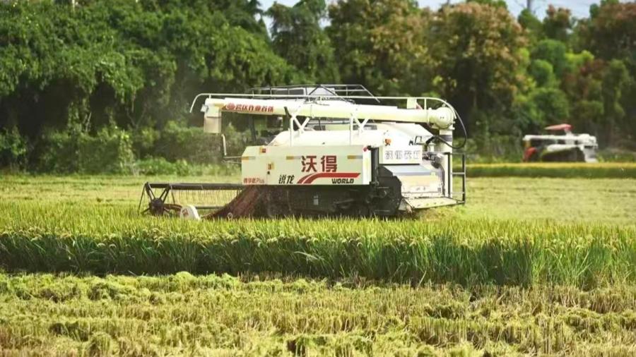 “一臺機一天能收30畝!農場從9月27日開始收割,已完成收割190畝,預計10月16日左右就能全部收完!”農場負責人賈同根看着忙碌的作業場景,聲音裏滿是豐收的喜悅,“今年畝產達1100斤,比去年畝增產100斤!”