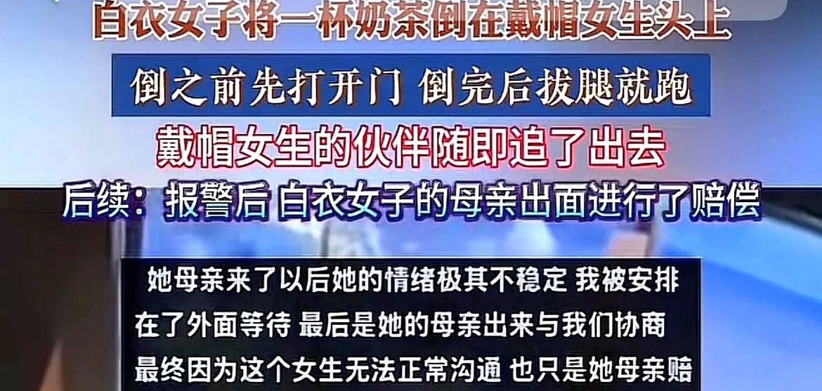 女子將整杯奶茶倒在他人頭上後逃跑,其母出面賠償後和解——2025-10-09 澎湃新聞