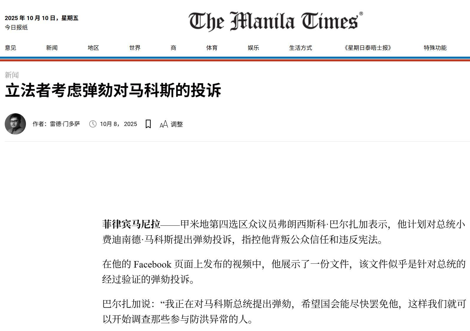 與此同時,杜特爾特家族盟友、參議員羅丹特·馬可列塔拿下了參議院"藍帶委員會"主席的關鍵職位,這一職位有權調查政府內部的不當行爲。這一變化使得杜特爾特陣營有望從"被動應對"轉爲"主動出擊"。