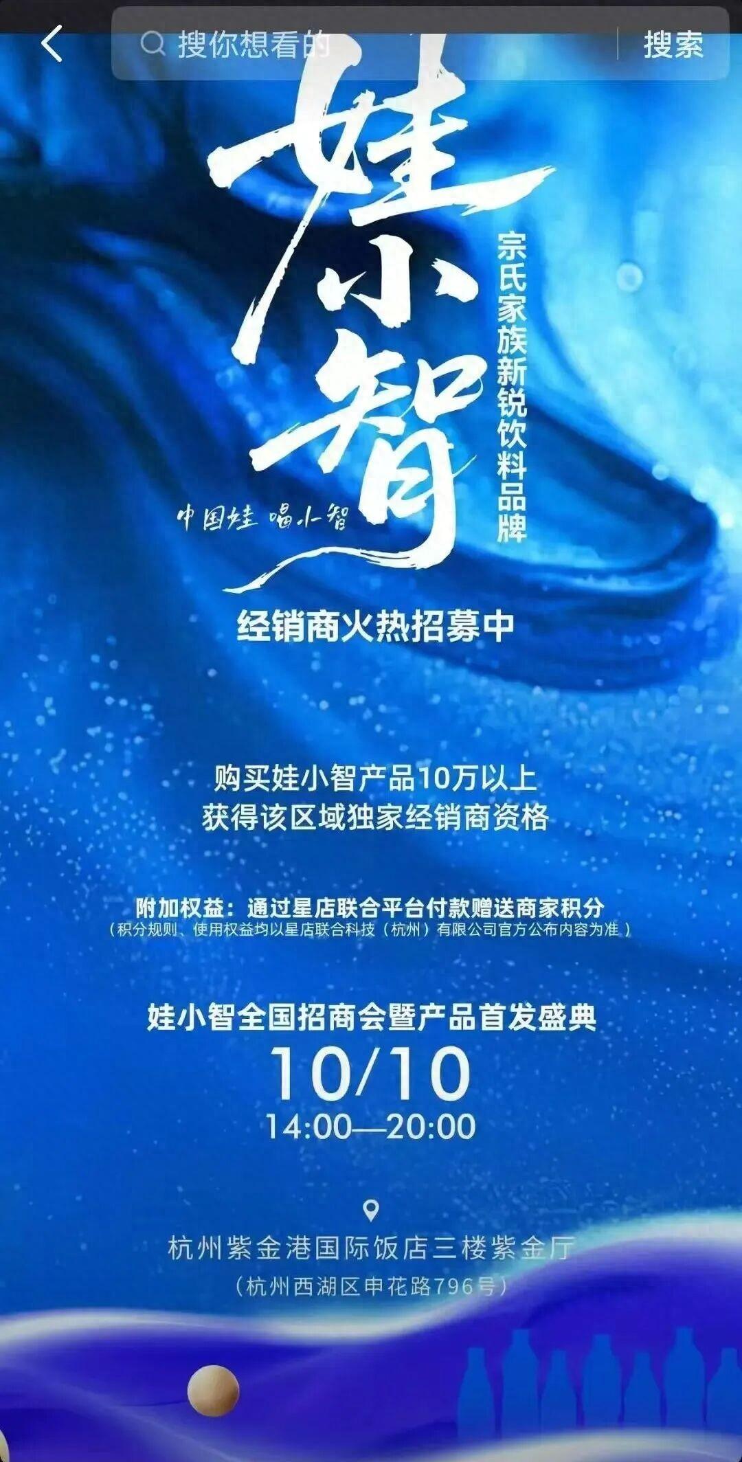 據“藍鯨新聞”報道,繼宗馥莉推出“娃小宗”後,宗馥莉叔叔宗澤後的品牌“娃小智”也於近日開啓招商活動。