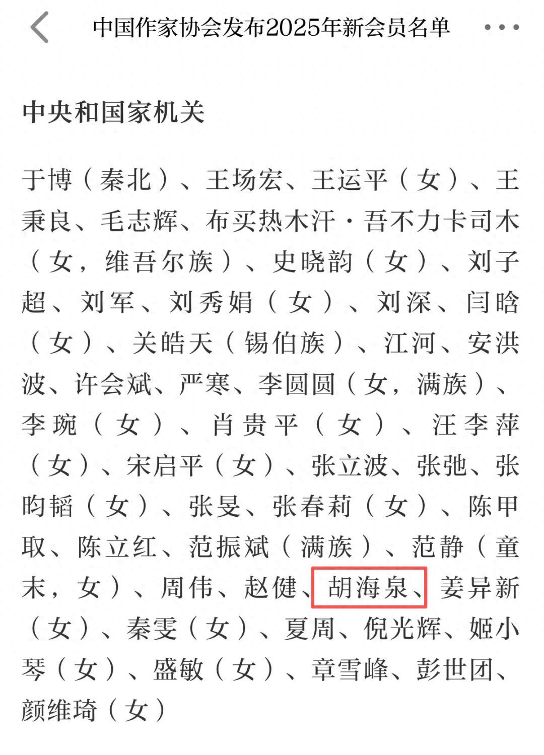 近日,中國作家網公佈中國作家協會2025年新會員名單,歌手胡海泉在列。