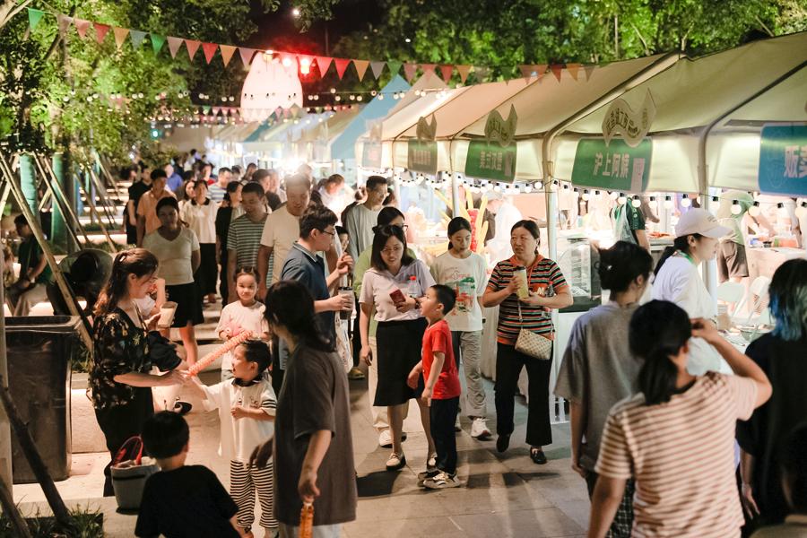 今年的打卡項目更加豐富大衆,市集第一天聯動上影元,小豬妖、黑貓警長、孫悟空等國漫經典IP在主舞臺和市集打卡區與市民互動,配合燈光裝飾的湖畔佈景、充滿設計感的攤位陳列,隨手一拍都是打卡的最佳景位。家長們忙着記錄孩子擺姿勢的可愛瞬間,紛紛表示:“今天來到市集,正好與小豬妖、黑貓警長合影啦”。