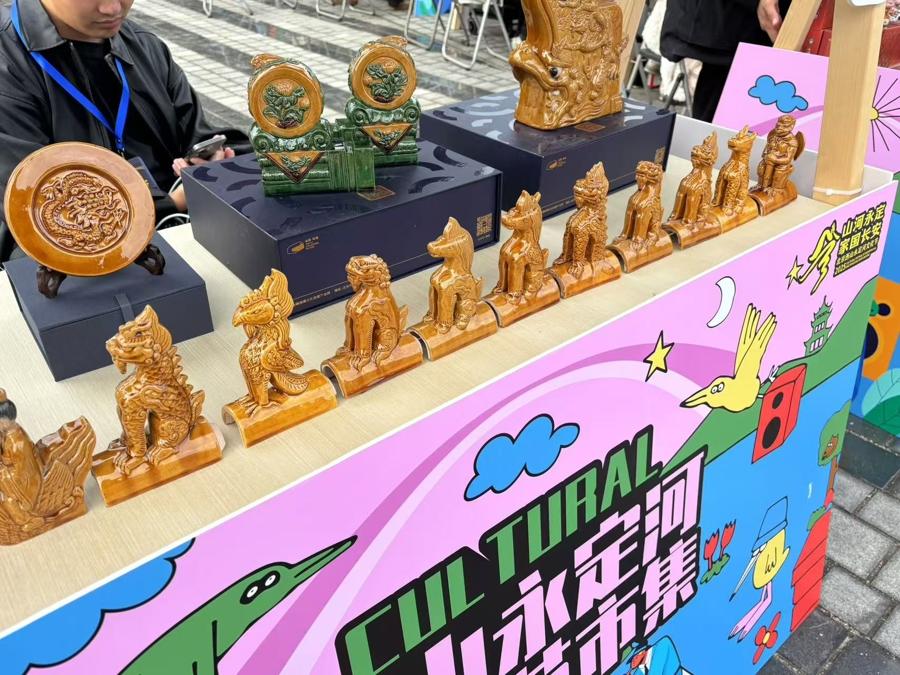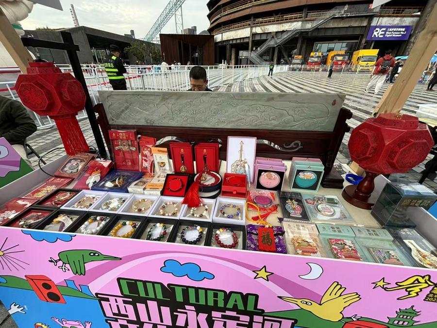西山永定河文化市集上展示的文創產品等。(彭丹/攝)