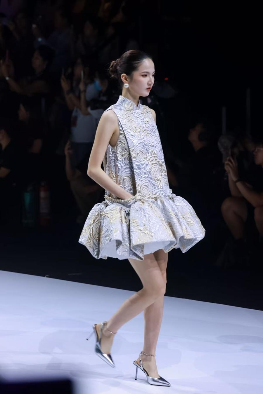 最立體的,莫過於設計師大膽拋棄了旗袍固有的修身形態,將整件衣物塑造成一朵含苞待放的玉蘭。在這裏,“花”不再是服飾上的點綴,服飾本身即是“花”。這是一種從二維平面到三維立體的根本性躍遷。