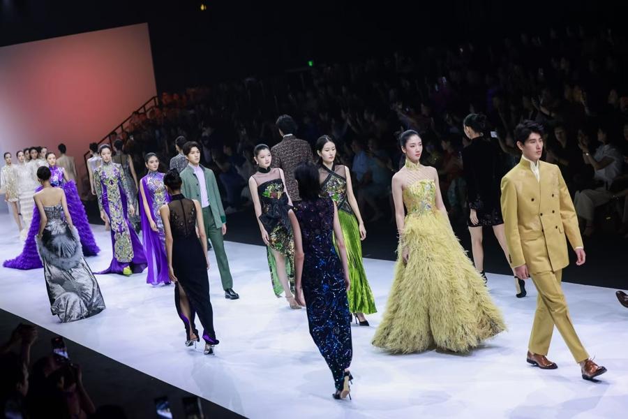 昨天走秀的80件旗袍中,除經典海派旗袍外,在品類與結構上也同步革新。大幅增加了上下裝產品比例,並拓展中式禮服矩陣,覆蓋從日常穿着的小禮服到高端場合的高定大禮服,實現“從日常到聚會”的全場景覆蓋。“我們的發展方向是推出適合日常通勤和符合年輕人審美的新型旗袍,讓打理旗袍不再成爲一種負擔,讓穿旗袍不再成爲一種負擔。”左麗雲說。