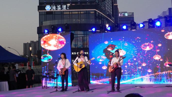 王重婷阿姨也從膠州路的家裏早早趕來,歌迷們在臺下暢聊等待,看着夜色逐漸上來,“心情就是好開心,這裏我們都很熟悉,經常在身後商場的阿迪、耐克、星巴克購物,一會舞臺結束還想看看街藝節的非遺市集與表演。”