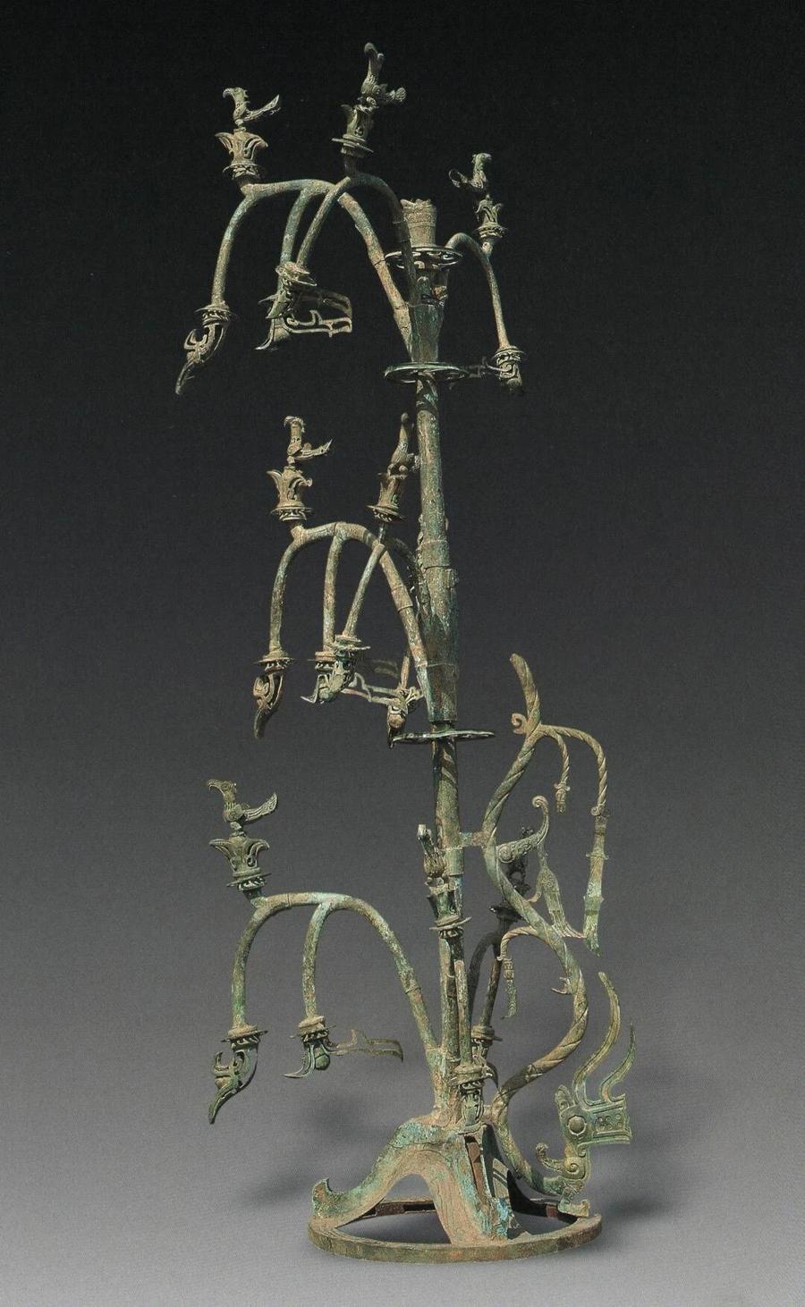 青銅神樹上或緣樹而下、或昂首挺胸的神龍。三星堆博物館供圖