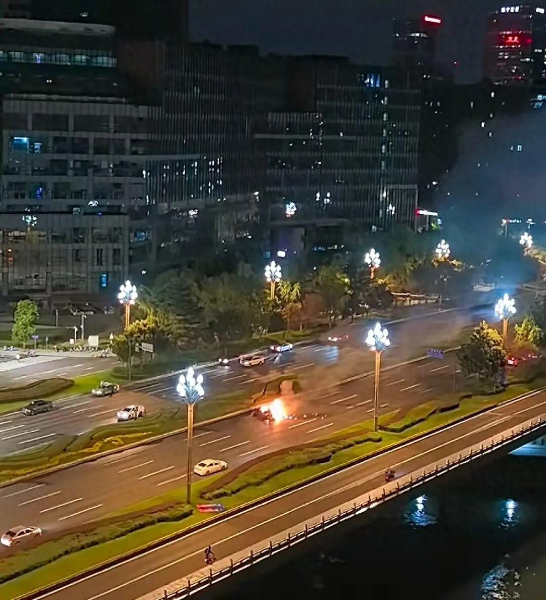 隨後車輛超速失控,先與綠化帶發生碰撞,隨後翻滾至對向車道並起火。一名車主的行車記錄儀顯示,車輛碰撞前從右側飛速駛過,碰撞後迅速燃起大火。
