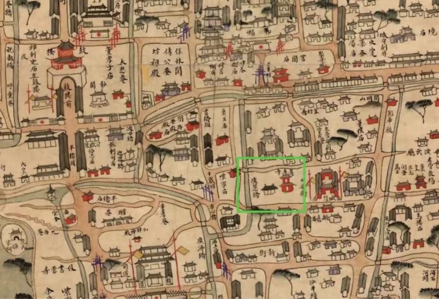 “本次出土發現了五個比較大的磉墩,推測這裏曾經有一處面闊五間、進深三間的建築。因爲體量比較大,不像老百姓的房子,應是公共建築。結合晚清的《寧郡地輿圖》和《鄞縣通志》裏的《鄞縣城廂圖》,有可能是當時的‘萬壽寺’。”