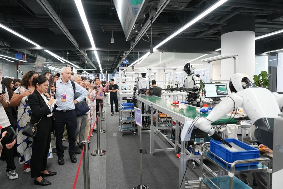 13日,與會嘉賓走訪了上海張江“國家地方共建人形機器人創新中心”、上海博物館東館等地,沉浸式體驗上海的高科技和文化,感受人工智能與文化交融的城市魅力。
