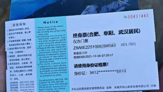 一次購票,進景區可終身免費。最近,安徽天柱山風景區發佈公告,宣佈從10月6日起,面向主要客源地的合肥、阜陽、武漢等三地居民推出“一次購票,終身免費”優惠活動。據悉,該專項門票售價130元,首次入園後,可憑身份證終身免費進入天柱山景區。