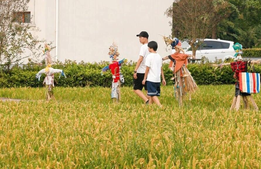 作品《稻草人》頭扎麻花辮、身着紅巾,在風中微微顫動,它不再是童話裏的角色,而更像是一個承載着真實記憶與溫度的農人化身。許多同行的父母指着它對孩子們說:“看,這就是守護稻田的衛士。”在親子互動間,關於守護、耕耘與豐收的古老智慧,被悄然傳遞。