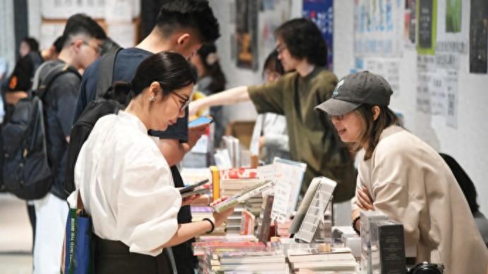 觀衆在圖書市集上選購書籍。 | 新華社發