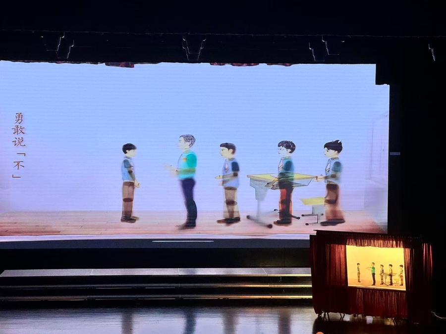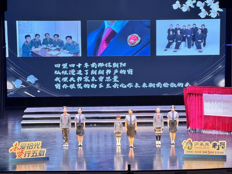 五年來,“未小賢”未檢團隊發佈菜單式法治教育課程,包括綜合普法、自我保護、犯罪預防、網絡安全、家庭教育、強制報告等專題課程,以視頻、漫畫、影視劇解讀等多種形式面向不同羣體開展多元化、個性化、專業化法治教育需求。活動現場,奉賢區啓賢青少年社會工作服務中心和“未小賢”幹警共同演繹情景劇《照亮黑暗的那束光》,育秀學校學生及檢察官等一同表演了皮影戲《法治之光 守護成長》,“未小賢”團隊和育秀實驗學校合唱團帶來未成年人檢察概念曲《奉時光予你》。