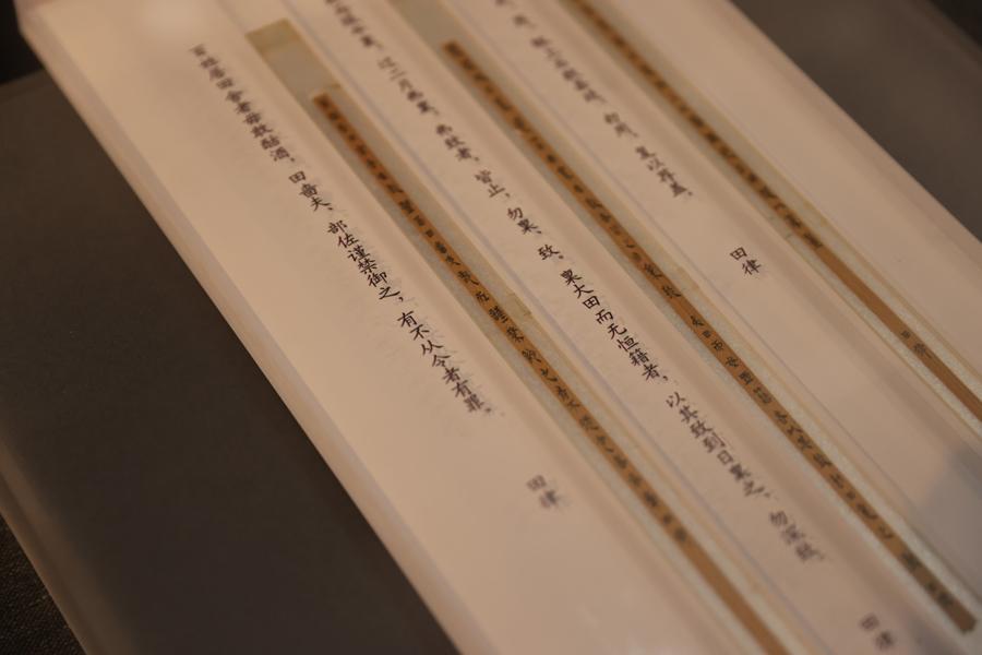圖爲雲夢縣博物館內展示的《秦律十八種》。/袁婧攝