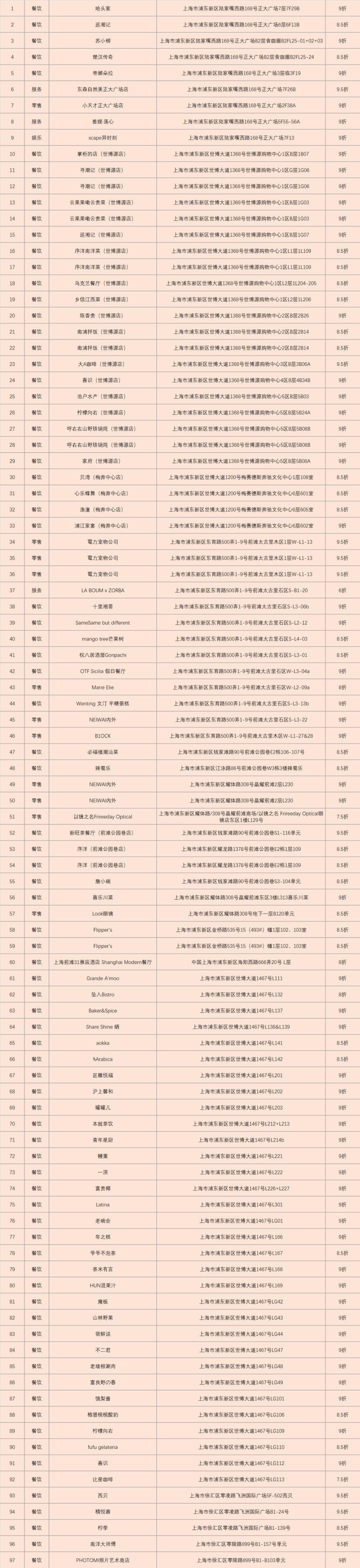 4、專享優惠:憑領取的“上海票根碼”至“商戶清單”中的任意合作商家,即可享受“票根”專屬優惠。
