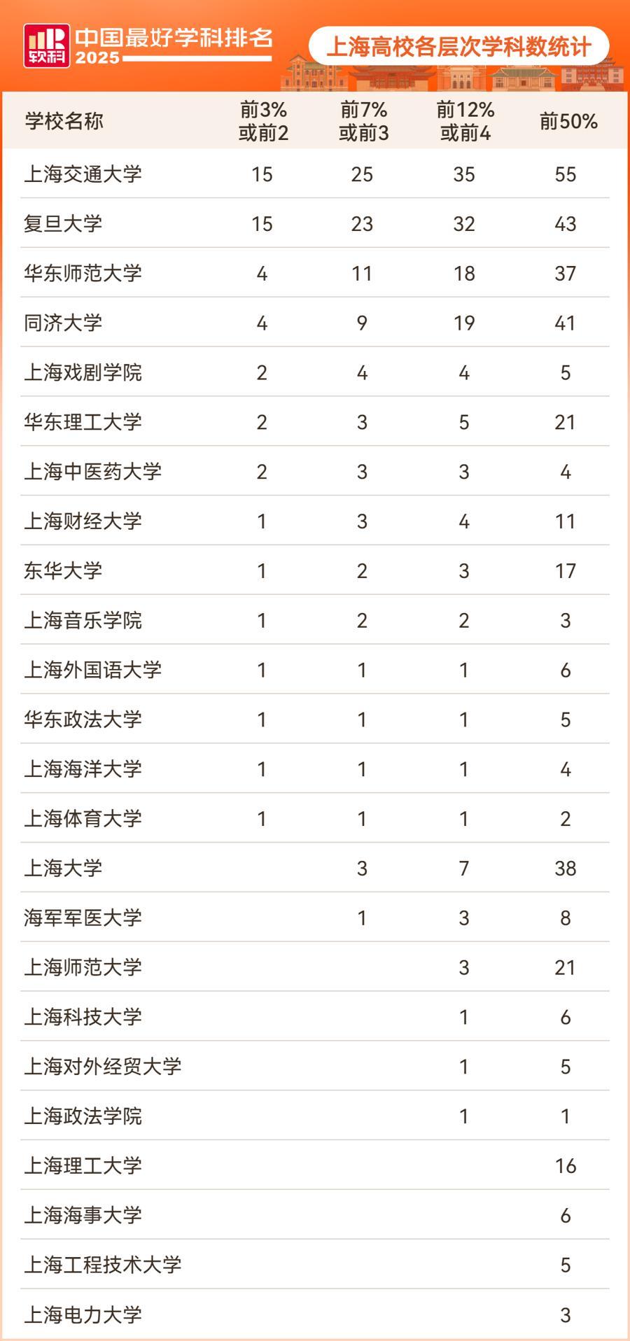 上海頂尖學科數量第二,江蘇上榜學科總數靠前