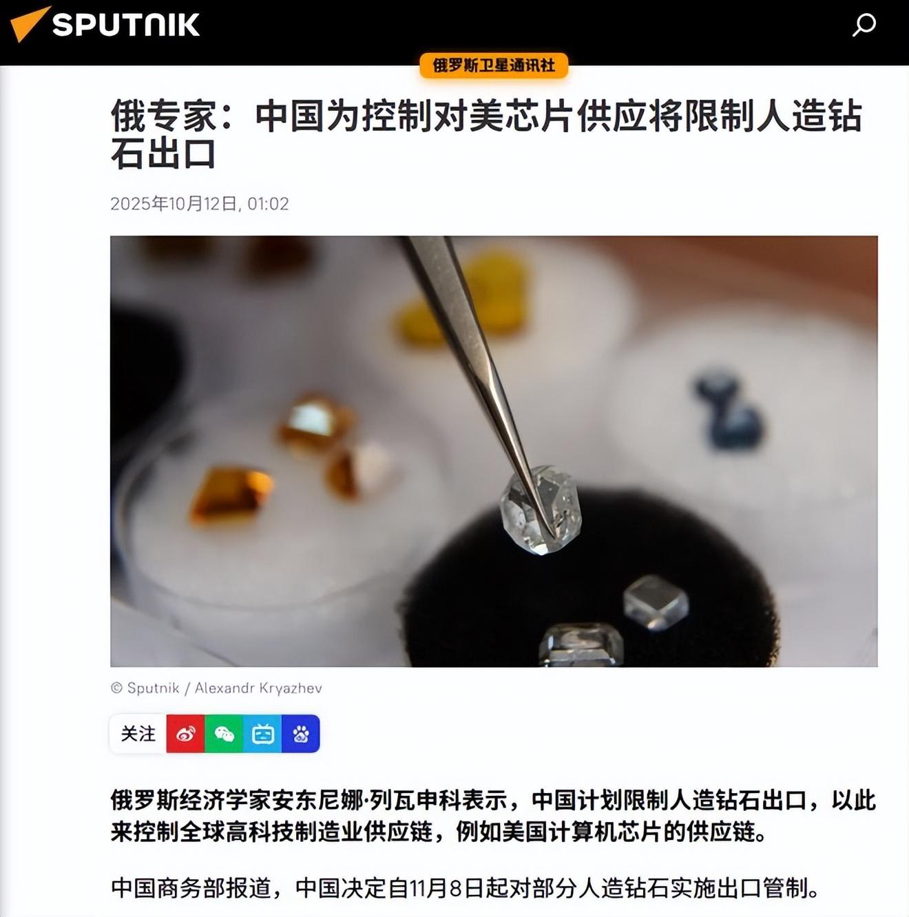 一紙出口管制公告,讓看似普通的人造鑽石成爲全球高科技博弈的焦點,俄羅斯專家感嘆中國終於打出了這張王牌。