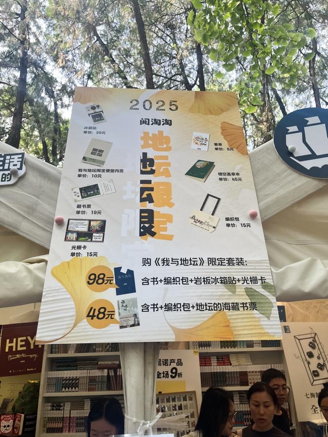年輕人講求效率,希望在一個目的地達成觀光、打卡、消費、交友、受教育等多種目標,從身體到精神均有所收穫。於是地壇就嘗試把年輕人的多種尋求融合起來。它重新啓動了地壇書市,和過去主要吸引中老年人和文學愛好者不同,書市越來越向年輕人靠攏。年輕人對價格敏感,書市就發放大額優惠券,年輕人喜歡文創,文創就成爲攤位的主打,史鐵生的金句被製作成帆布包和樹葉造型的書籤。除了賣書,書市還準備打卡、蓋章、扭蛋、搖骰子、製作明信片等活動,增強年輕人的參與感。