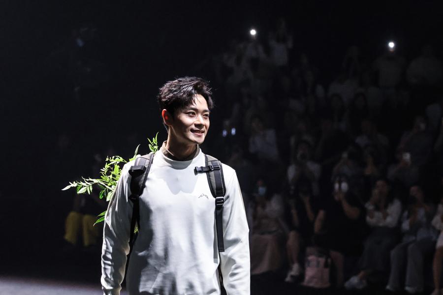 在本次發佈大秀上,海瀾之家全新國潮系列代言人——青年演員曹駿完成了代言人官宣後的T臺首秀。整場大秀以“冬山凝望、春山覺醒、夏山釋放、秋山收穫”爲篇章線索,通過燈光與音樂的巧妙配合,構建出移步換景的沉浸式東方美學空間。