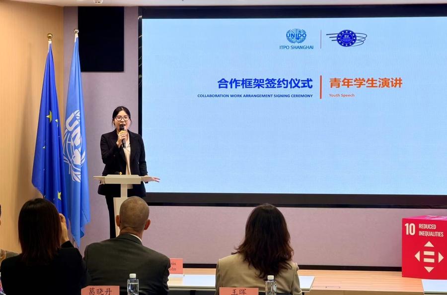 在國際人才培養領域,雙方將聚焦青年發展,攜手培育全球發展新力量。聯合國工業發展組織上海投資促進中心主任趙曉蕾女士在儀式上發表講話時強調:“青年是未來的希望,是推動全球可持續發展的重要力量。此次合作將爲青年創業者、學生及訪問學者創造研究與項目實踐條件,助力他們在真實國際合作環境中鍛鍊成長。”