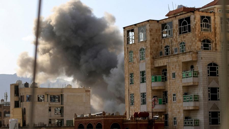 這是9月25日在也門首都薩那拍攝的以軍空襲產生的濃煙。 新華社發