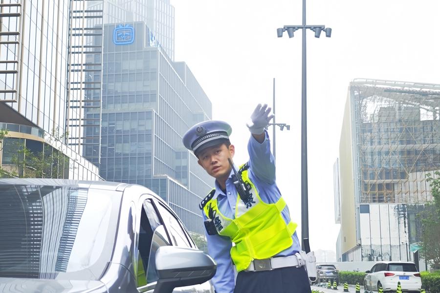 據瞭解,園區建成之初,堵車現象尚不嚴重,警方設置3個臨時停車區域,基本保障通行有序。爲了更加優化周邊道路形勢,倪嘉輝連續半個月蹲守在國航路淞滬路路口。人找車、車找人的“洪流”中,他找準了周邊3處路口信號燈配時的問題,用一路綠波推動車流動起來,使晚高峯提前一小時結束。