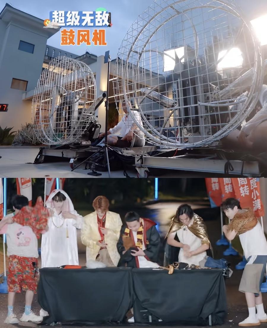 面對戶外綜藝普遍存在的“遊戲荒”困境,《快樂趣吹風》採用“複合型設計”與“因地制宜”策略突圍。例如,結合節目名“快樂趣吹風”設計的“鼓風機挑戰”不僅復刻經典,更融入海南地域特色與藝人個性反應,賦予環節新意。