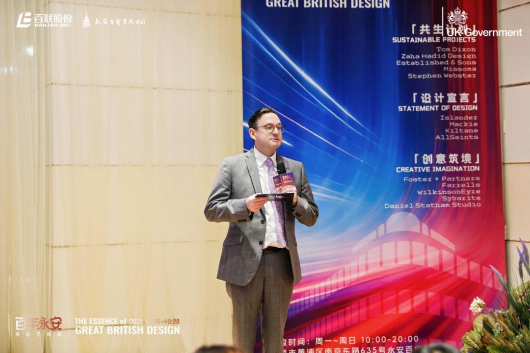 英國駐上海總領事包邁岫(Matt Burney)在致辭中表示:上海是一座兼具傳統與現代的城市,承載着歷史與時尚的永安百貨,爲英中合作提供了理想的舞臺。在設計領域,英國以其獨特的風格和深厚的文化底蘊而聞名,並在建築、零售和時尚等領域與上海建立諸多成功案例。英國品牌始終堅持將創意與可持續理念融入設計,推動跨文化交流與產業創新。未來,英國政府將繼續支持英國企業在中國的發展,並期待與上海以及更多合作伙伴攜手,開創更具包容性和創造力的未來。