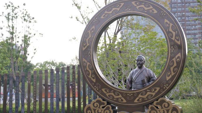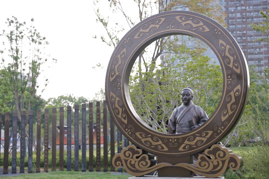 圖爲遺址公園內的“喜”塑像。/袁婧攝