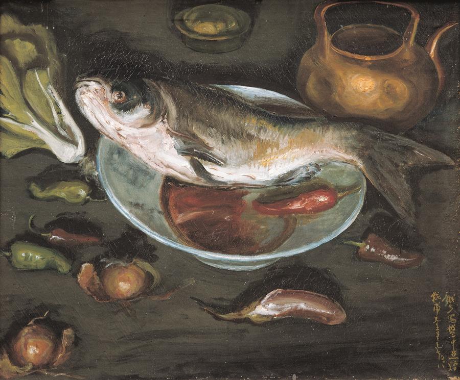 李鐵夫《盤中魚》
