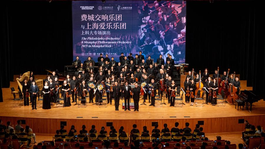 10月17日晚,費城交響樂團與上海愛樂樂團聯合專場音樂會在上海科技大學會議中心上演。這是繼去年室內樂成功合作後,兩支樂團將合作形式升級爲交響樂合奏,生動詮釋了“各美其美,美美與共”的文明交流圖景。