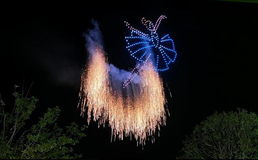 隨着夜幕深沉,烏鎮上空的無人機表演將節日氣氛推向高潮,點點亮光與璀璨煙花交相輝映,將夜空裝點得格外夢幻。