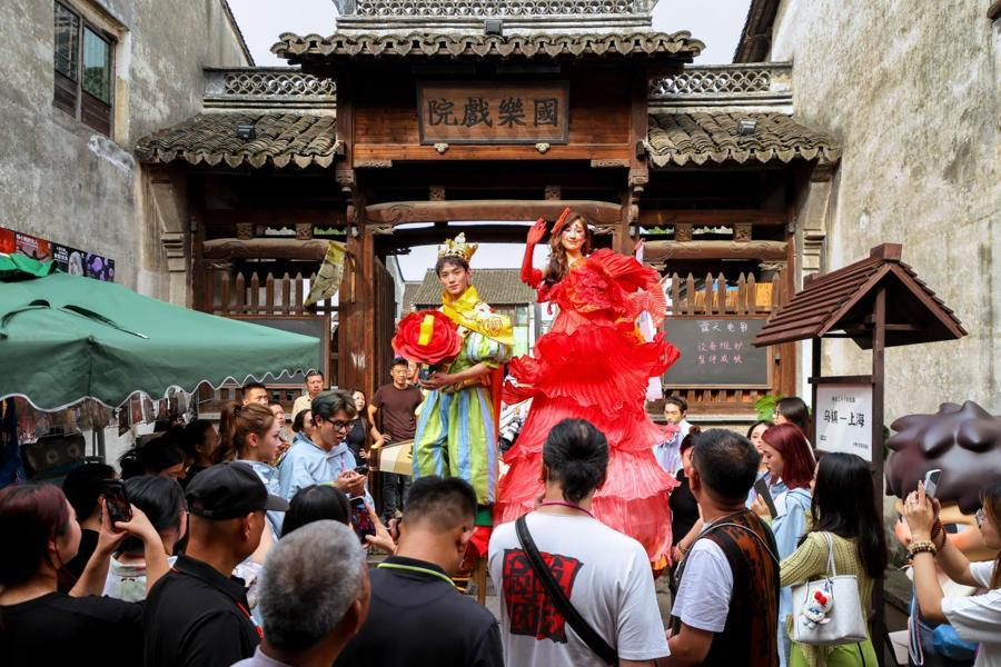 “我只是來烏鎮旅遊的遊客,沒想到在這逛了一天對戲劇產生了興趣。”一位從上海來的遊客笑着說,“剛在巷子裏和演員互動的感覺很特別,彷彿整個烏鎮都在‘演戲’,而我們既是觀衆,也是參與者。”當劇場的物理邊界模糊,每一個來到烏鎮的人都能在不經意間與藝術撞個滿懷。