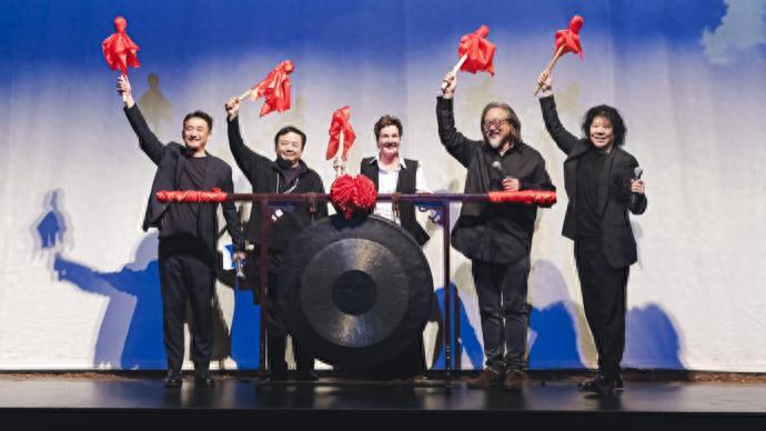 “扶搖直上,氣象萬千!”藝術總監孟京輝站在烏鎮大劇院舞臺中央,用充滿力量的聲音宣告本屆戲劇節的理念。話音剛落,臺下掌聲如潮。五位戲劇界的重要人物——烏鎮戲劇節發起人陳向宏、黃磊、賴聲川、孟京輝,與本屆開幕大戲《人類之城》導演、德國戲劇大師卡琳・拜爾共同手握鑼槌,在整齊的倒計時聲中同時發力,渾厚的鑼聲瞬間穿透劇場每個角落。